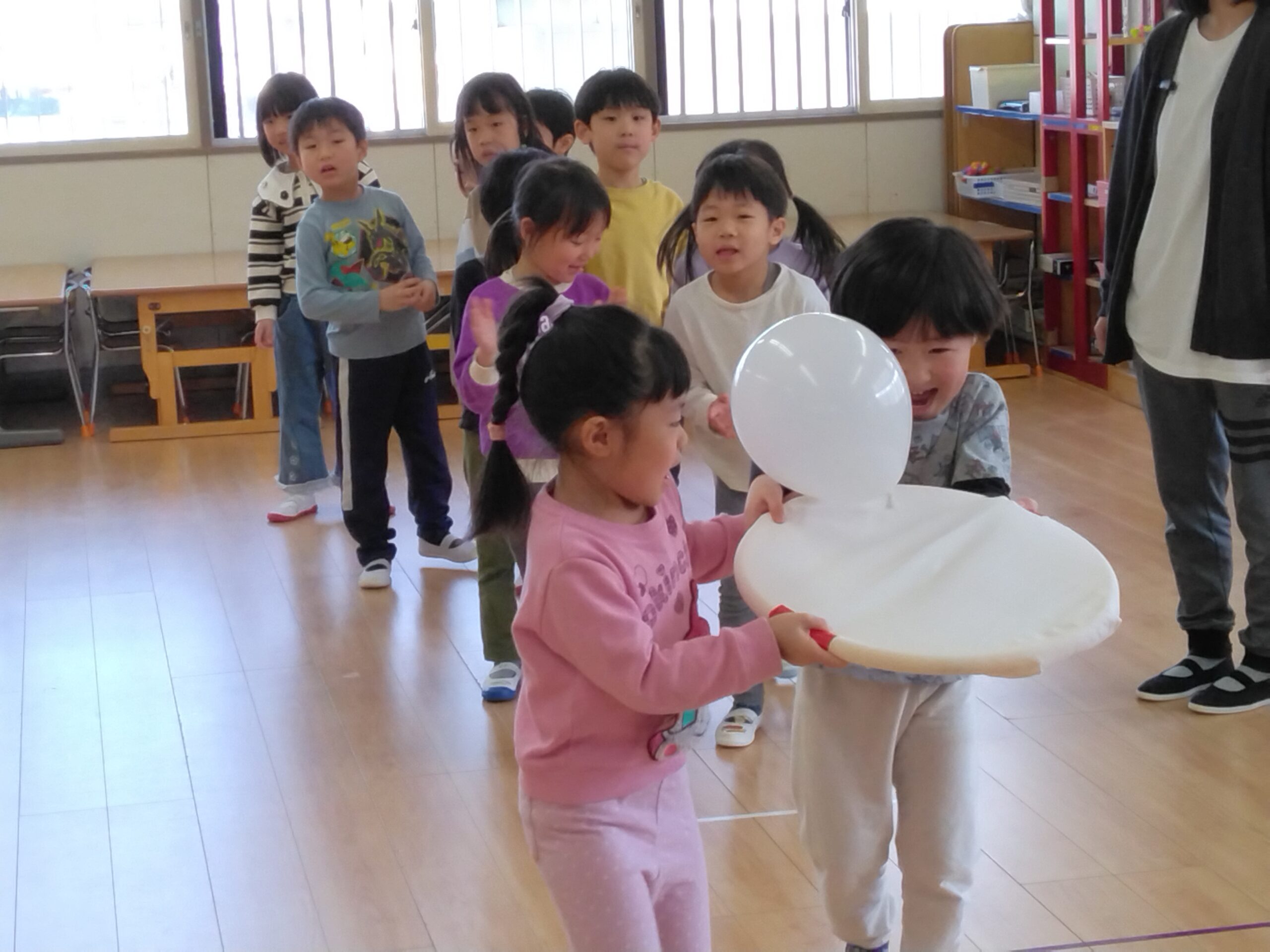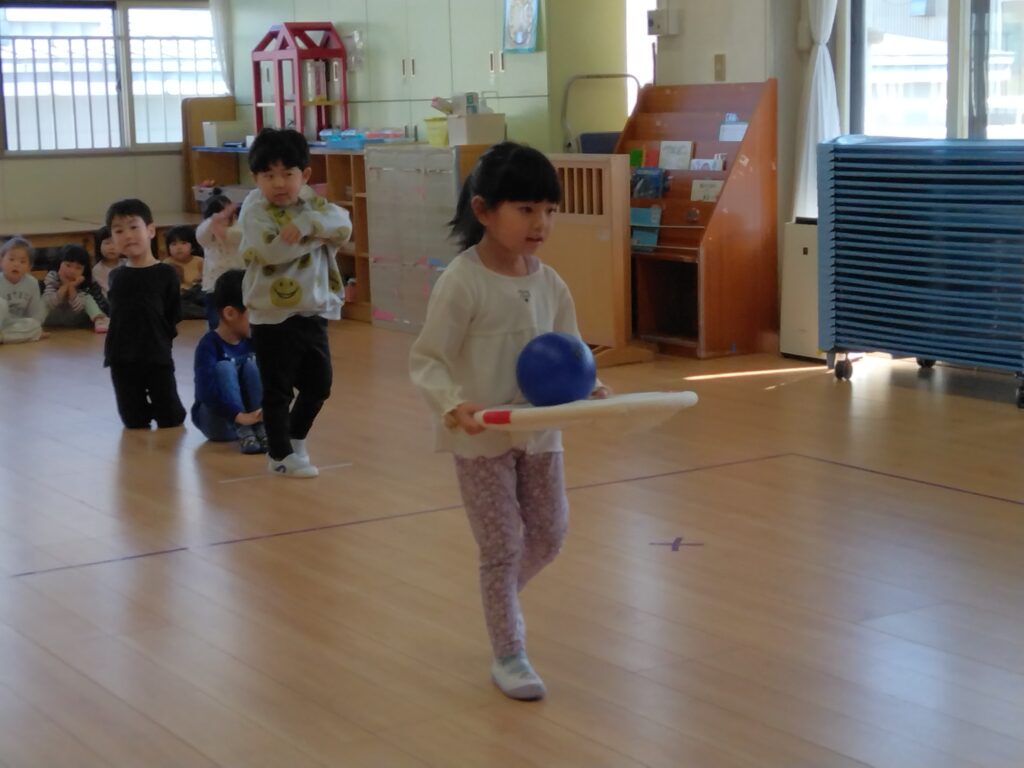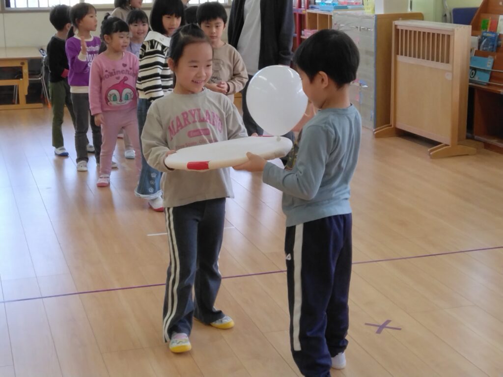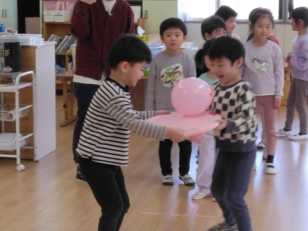 ひなまつりのお話を聞いた後、ちるちる組・ひかり・あおいとり組さんはボールや風船を運ぶリレーをして楽しみました🎈「がんばれ~!」とお友だちのことを応援して、ゲームは大盛り上がりでした😊